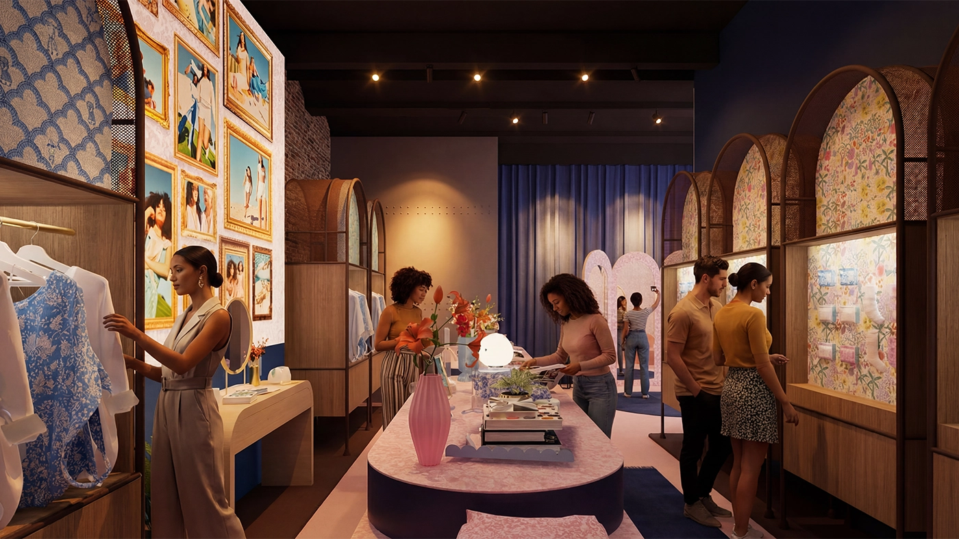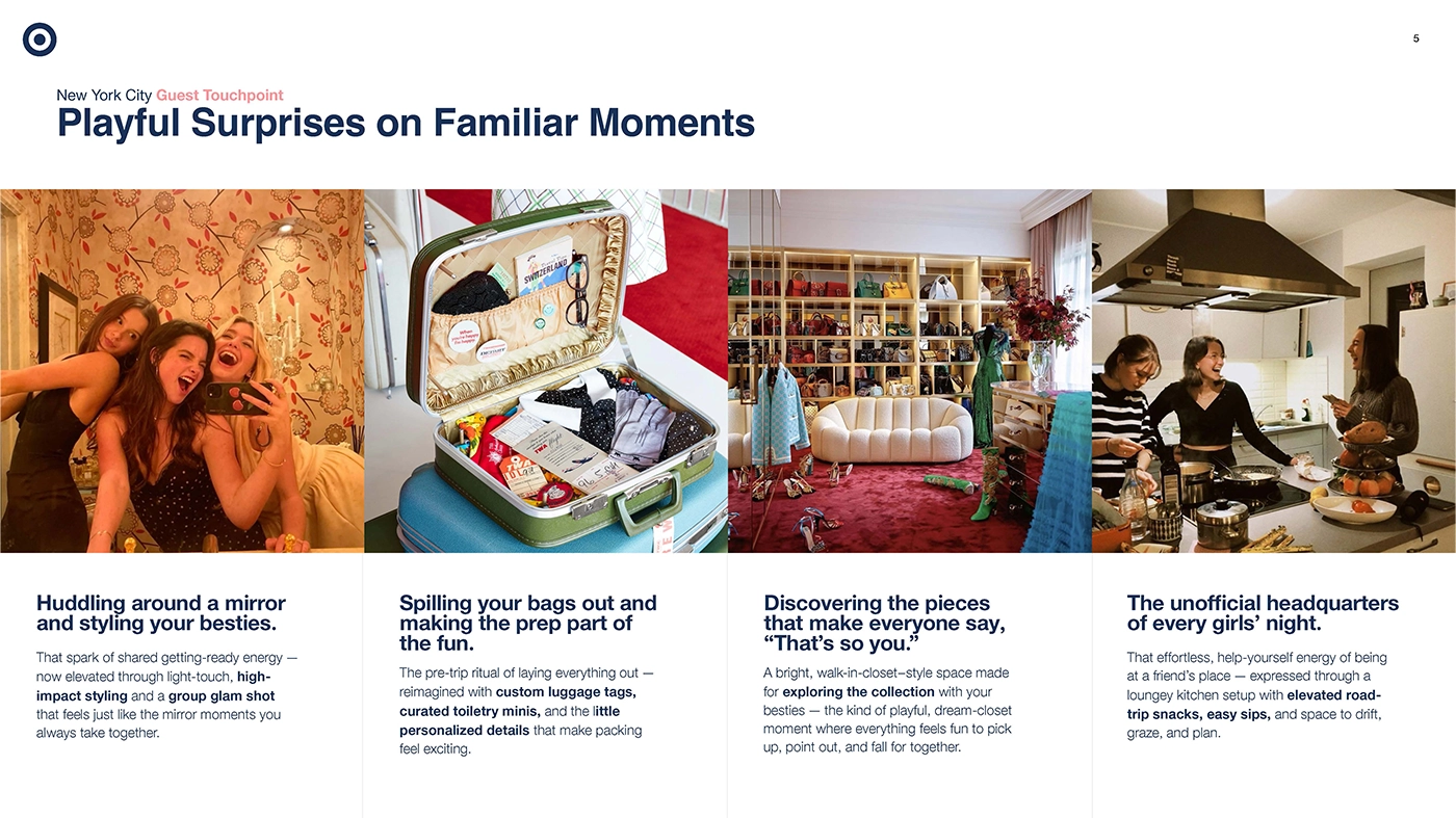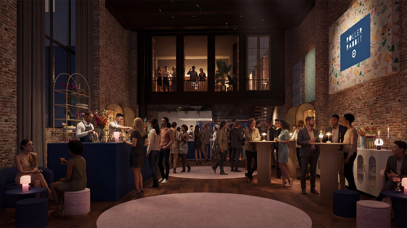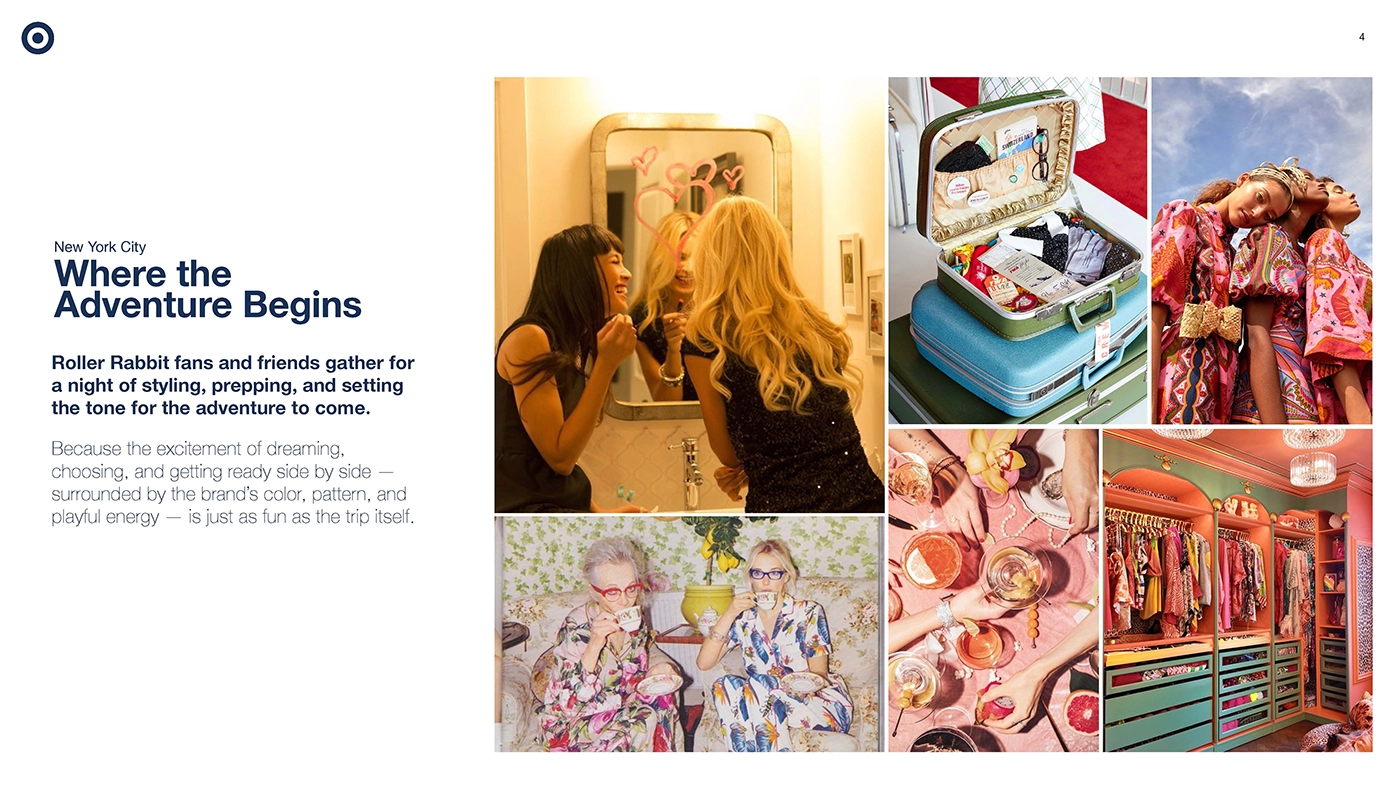 Moment 1: The Adventure Begins in NYC. To kick off the campagin, Target opens its NYC home to friends and superfans for an unforgettable celebration of the limited-edition Roller Rabbit × Target collection—a night built for togetherness, discovery, and captureworthy moments. Our guest and online audience came together to pack for the upcoming adventure, later to be revealed in the campaign videos and our second IRL moment. This editorial/influencer focused event was designed to be shared. Guest discovered surprise moments of style and programming across three floors including food tasting demos with chef Eden Grinshpan, and a living pool-side dance performance directed and choreographed by Sarah O'gleby.